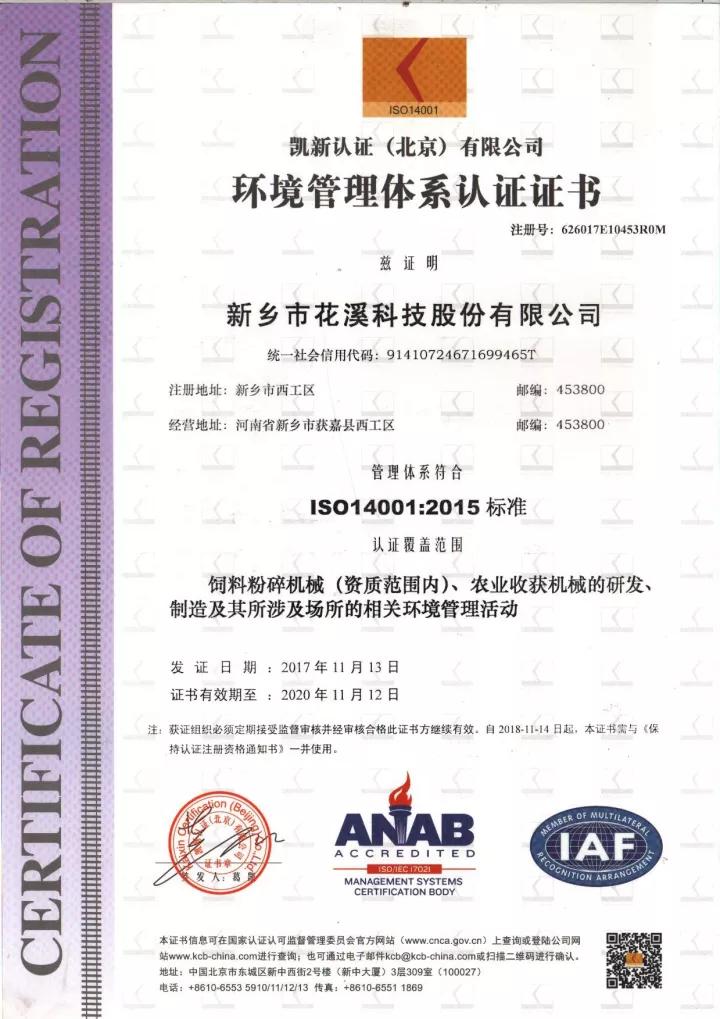 2017年11月13日,花溪公司獲得了環境管理體系(ISO14001)認證證書和職業健康安全管理體系(OHSAS18001)認證證書。