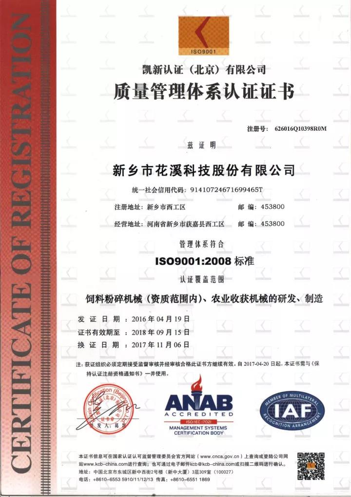 開展體系認證工作對于提高公司產品質量,增強企業綜合競爭能力,具有重要的現實意義和積極的促進作用。公司早在2009年便已通過了質量管理體系(ISO9000)的審核,獲取了證書。
